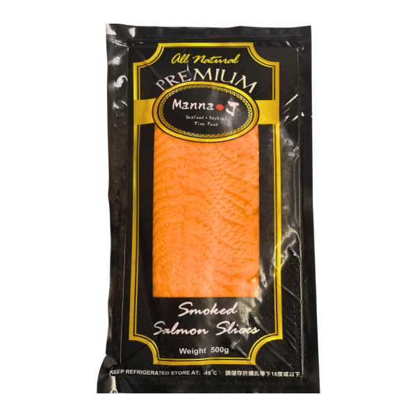 煙三文魚是一種經鹽漬後再通過熱熏或冷熏加工製作的產品,再經切片的程序,然後置入真空包裝袋內密封保存,主要分為熱熏煙三文魚及冷熏三文魚。煙燻三文魚是許多歐式餐點常見的開胃小點外,搭配著牛油果或烤麵包等食材更是最完美的輕食搭配。